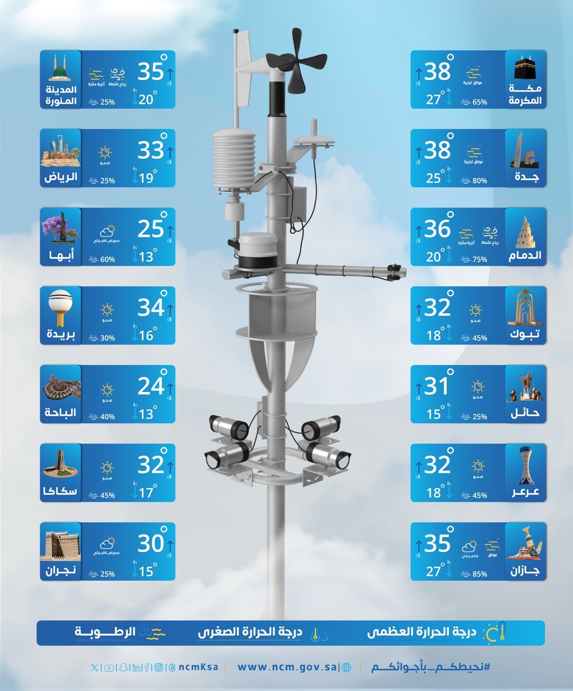 كما تؤكد التقارير أنه قد يتكون ضباب خلال الليل وساعات الصباح المبكرة في الأجزاء الجنوبية الغربية من ساحل البحر الأحمر، وأيضًا الجزء الجنوبي من المنطقة الشرقية. بينما ستلعب الظروف الجوية المستقرة دورًا بارزًا في باقي مناطق المملكة.