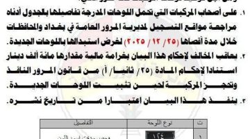 المرور تطلب استبدال لوحات المركبات قبل 25 ديسمبر