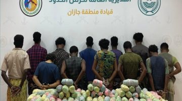 القبض على 12 مهربًا من جنسيات إثيوبية ويمنية وإريترية بحوزتهم 198 كجم من القات المخدر
