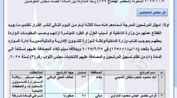 وزارة الداخلية تدعو المقبولين للدورة (12) في معهد إعداد مفوضي الشرطة