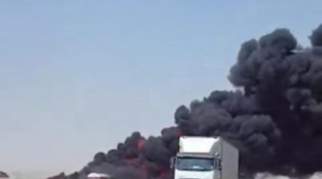 حريق يلتهم شاحنتين ويعطل حركة المرور على طريق الساحل في جدة