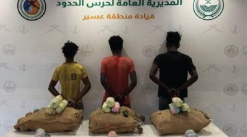 حرس الحدود في عسير يضبط 3 مهربين بحوزتهم 60 كيلوغراماً من القات