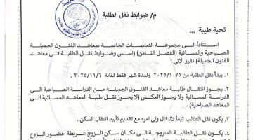 التربية تنطلق في إجراءات نقل طلبة معاهد الفنون الجميلة اعتباراً من الأحد المقبل