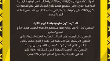 الماص تتيح تذاكر مباراة الرجاء للجماهير الفاسية: الأسعار ونقاط البيع متاحة الآن!