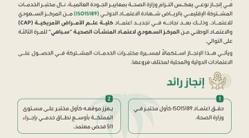 المختبر الإقليمي بالرياض يحقق الاعتمادات المحلية والدولية في إنجاز متميز