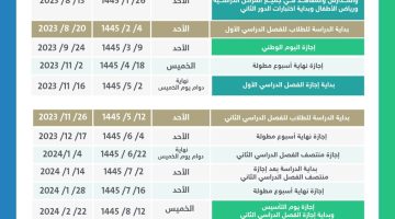 وزارة التعليم السعودية تُعلن مواعيد التقويم الدراسي 1445 وعدد الفصول الجديدة