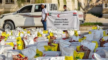 الهلال الأحمر يوزع مساعدات غذائية عاجلة للأسر المحتاجة في مختلف المحافظات اليمنية