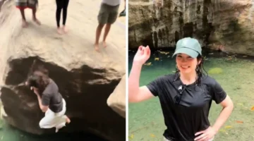 • مغامرة جريئة: سائحة أجنبية تقفز من 6 أمتار في وادي لجب بجازان