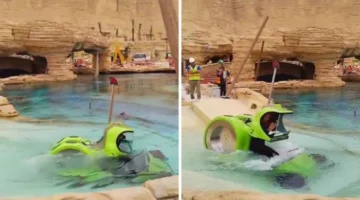 • شاهد: اختبار تجريبي لألعاب تحت الماء في بحيرة أكواريبيا بمدينة القدية