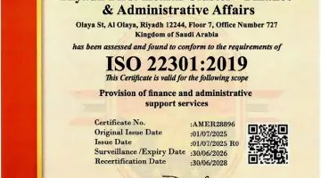 • تجمع الرياض الصحي الأول يحصل على شهادة الأيزو ISO 22301 في مجال استمرارية الأعمال
