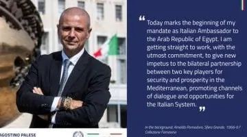 • السفير الإيطالي الجديد: مصر وإيطاليا شريكان رئيسيان في تعزيز الأمن في منطقة البحر الأبيض المتوسط