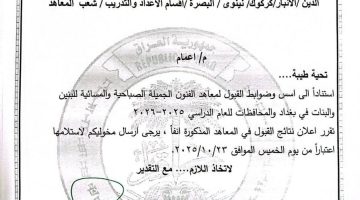 • التربية تصدر نتائج قبول معاهد الفنون الجميلة غداً (وثيقة)