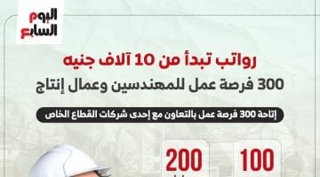 • 300 وظيفة جديدة في الجيزة برواتب تصل إلى 10 آلاف جنيه: تفاصيل كاملة في إنفوجراف